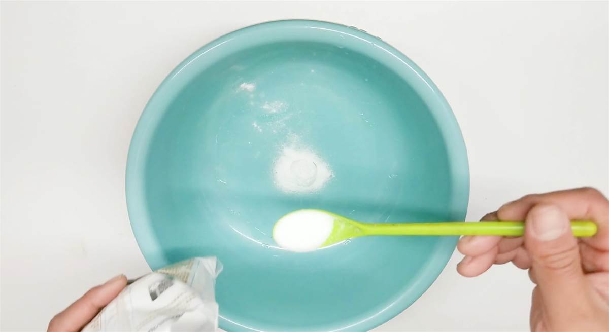 下面跟著小編一起來看一下吧。這時我們自己製作一個清潔溶液,要比我們買的效果要好得多。首先我們準備一個容器,在容器裡倒入一點小蘇打,小蘇打倒入一勺就可以。