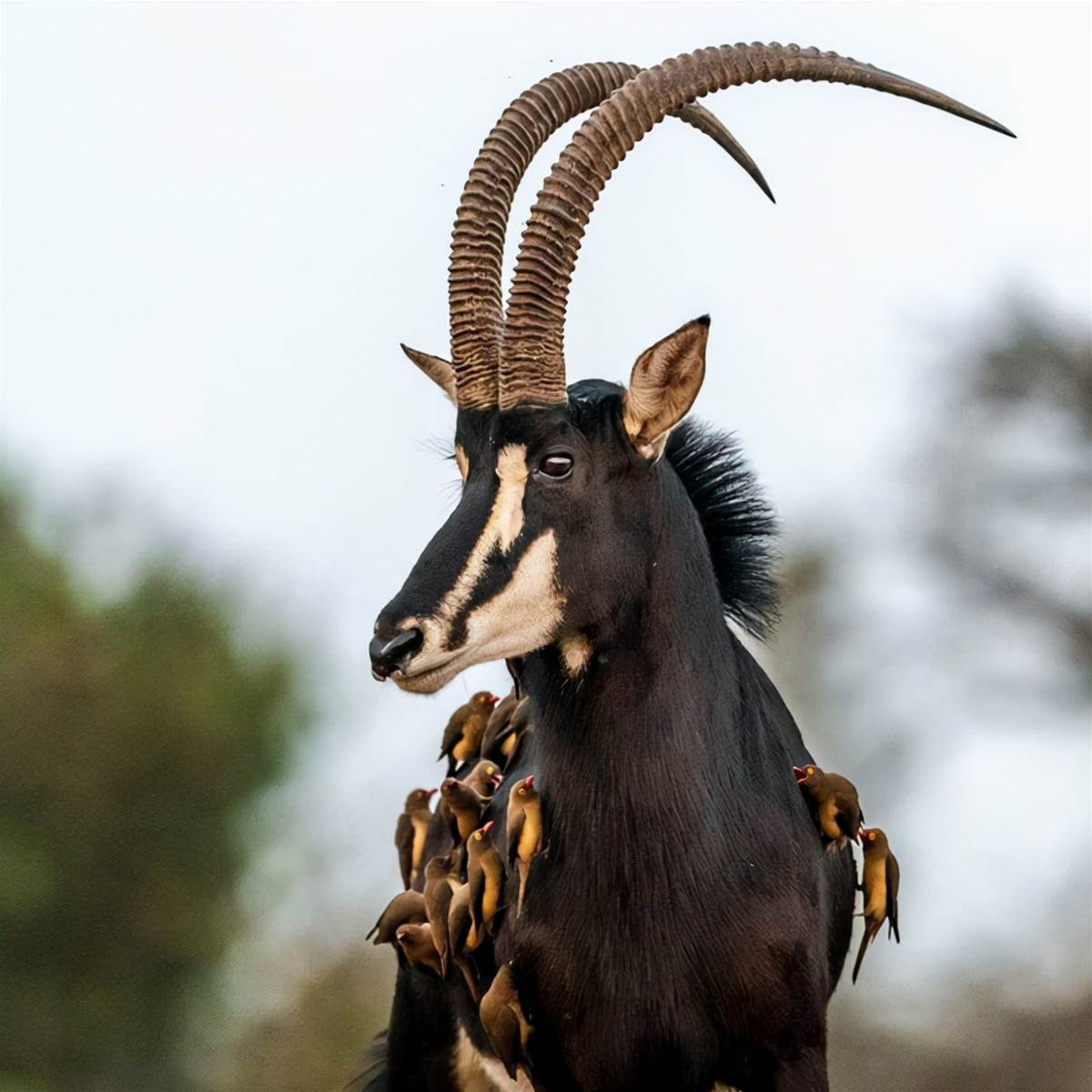 生活在非洲大陸的黑羚羊,長在頭上又尖又彎的角引人注目。