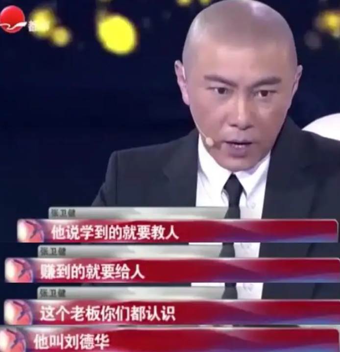 有一次上節目,張衛健說要感謝自己老板,說老板在自己最困難的時候給了一張支票自己,順便告訴自己一句話: 「學到的就要教人,賺到的就要給人。」